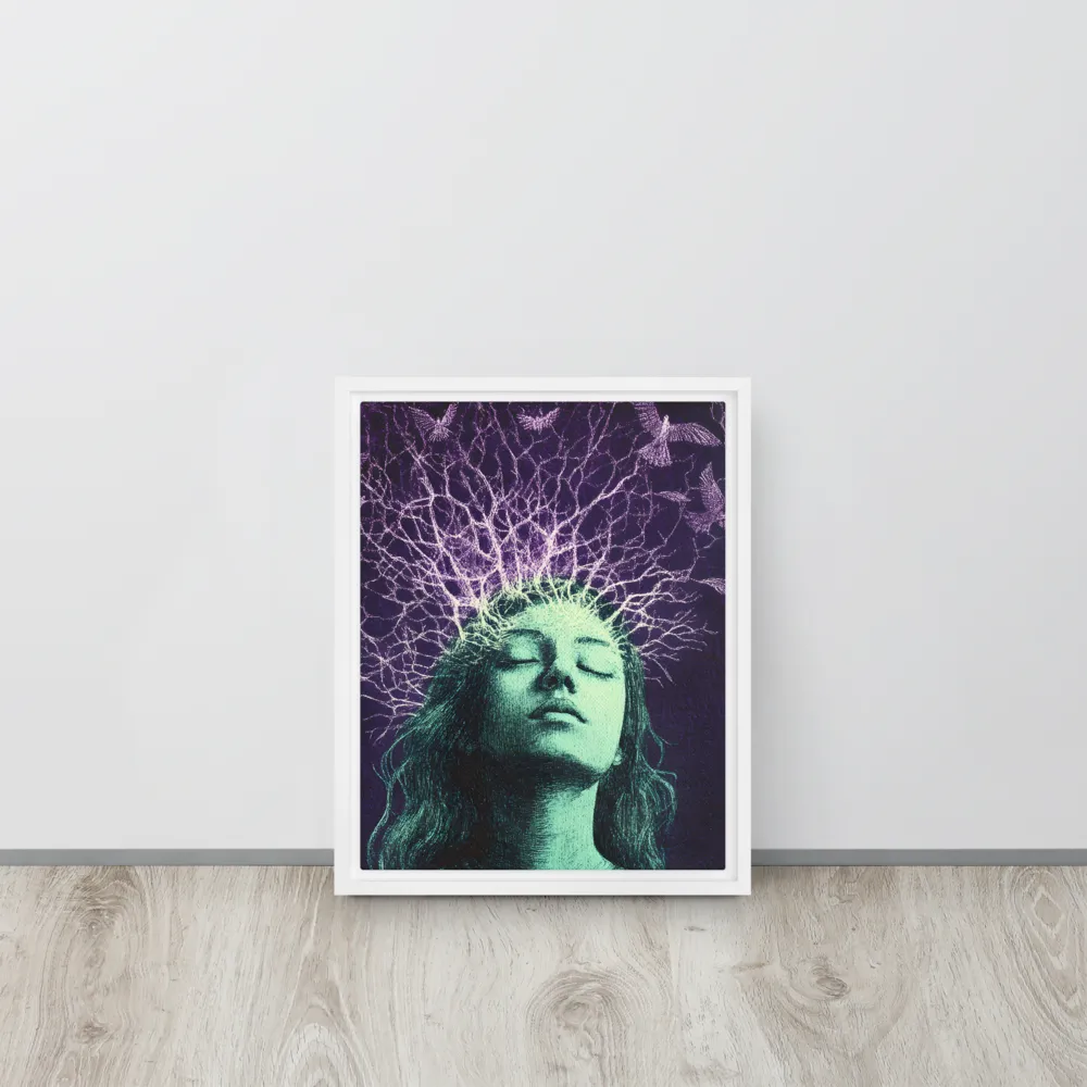 Neon Heron Canvas with Black Frame