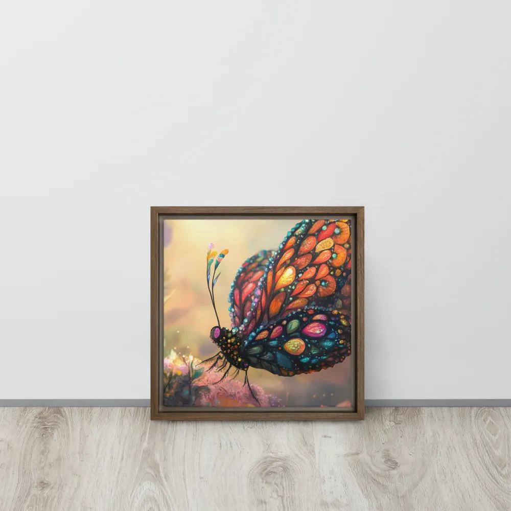 Floral Elegance: The Giraffe's Portrait | Canvas with Brown Frame | 16″×16″
