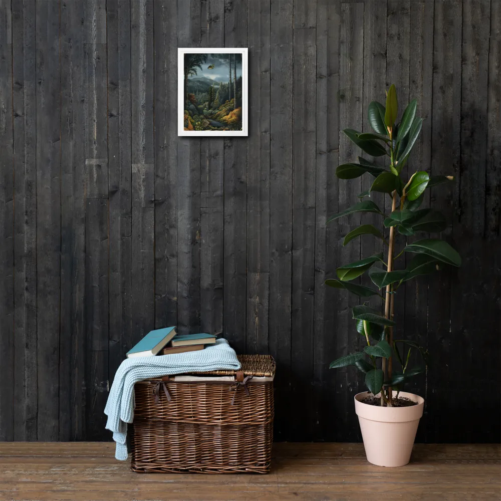Wanderer Through Vibrant Woods Canvas with Brown Frame