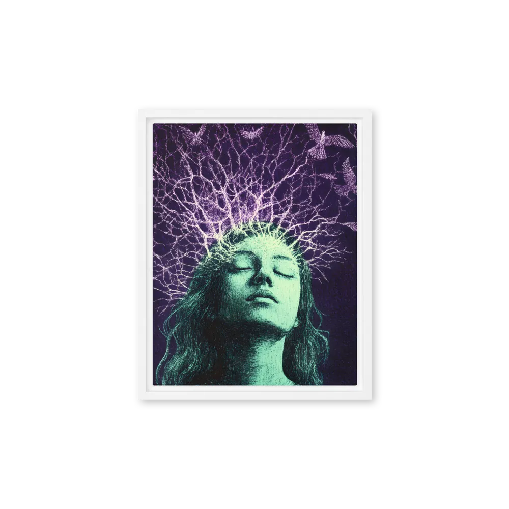 Moonlit Mountain Lake Reflection Canvas with White Frame
